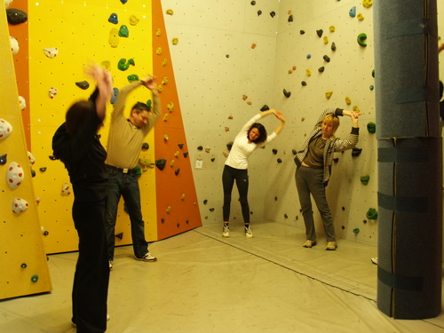 ...hier machen wir uns erst mal warm, damit wir uns beim anschließenden Klettern nichts verreißen..
