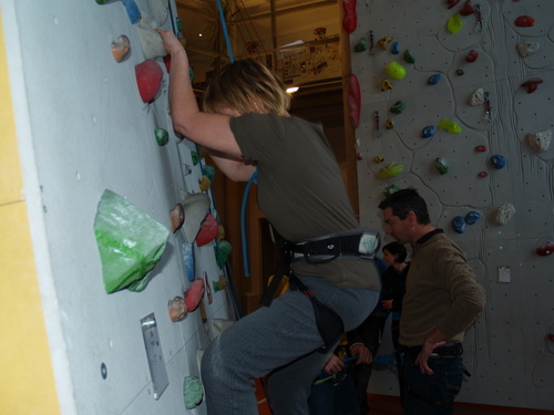 Weiter ging es, indem jeder von unserer Gruppe an einer kleinen Wand austestete wie weit jeder gehen kann … ich muss zugeben, da schlichen sich bei mir erste Bedenken ein, weil mir doch die Kraft im linken Bein fehlt und mit der Kraft in den Armen ist es auch nicht viel besser…