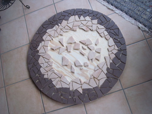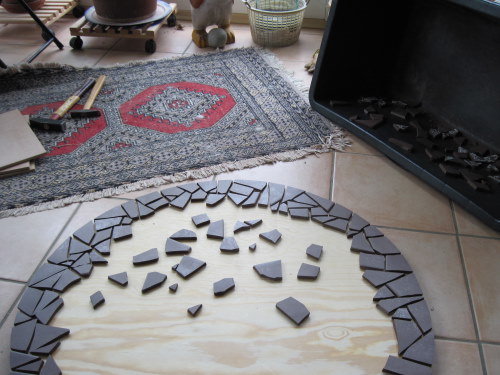 ..so sieht es bei mir aus, wenn ich die Fliesenteile für einen neuen Tisch zusammen suche...als erstes lege ich den Rand...