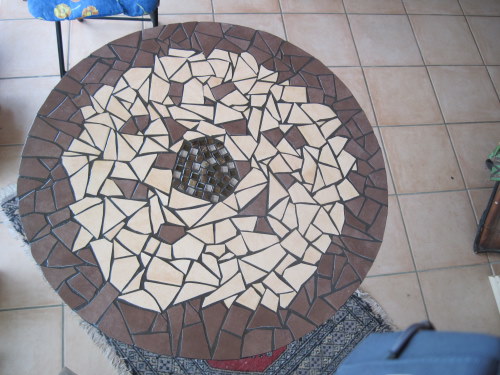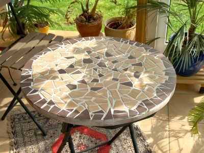 ...diemal hab ich versucht einen alten Tisch wieder zu beleben...Fliesen zusammenhauen, ein Muster auf den Tisch und fertig...- so einfach war´s natürlich nicht - ...aber es viel Spass gemacht mal wieder mit Fliesenkleber rumzumatschen, und ich denke das Ergebnis kann sich sehen lassen...