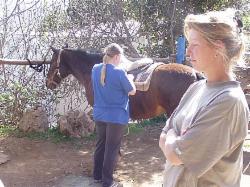 ...letztes Jahr (2006) als es so heiss war bin ich mit MISS TONI QUIXOTE, die liebevoll Quiori gerufen wird, ausgeritten...in einer Pfütze am Reitplatz habe ich wohl nicht aufgepasst, so schnell konnte ich gar nicht reagieren und ich lag mit dem Pferd am Boden und bekam eine kostenlose Schlammpackung *hihi....